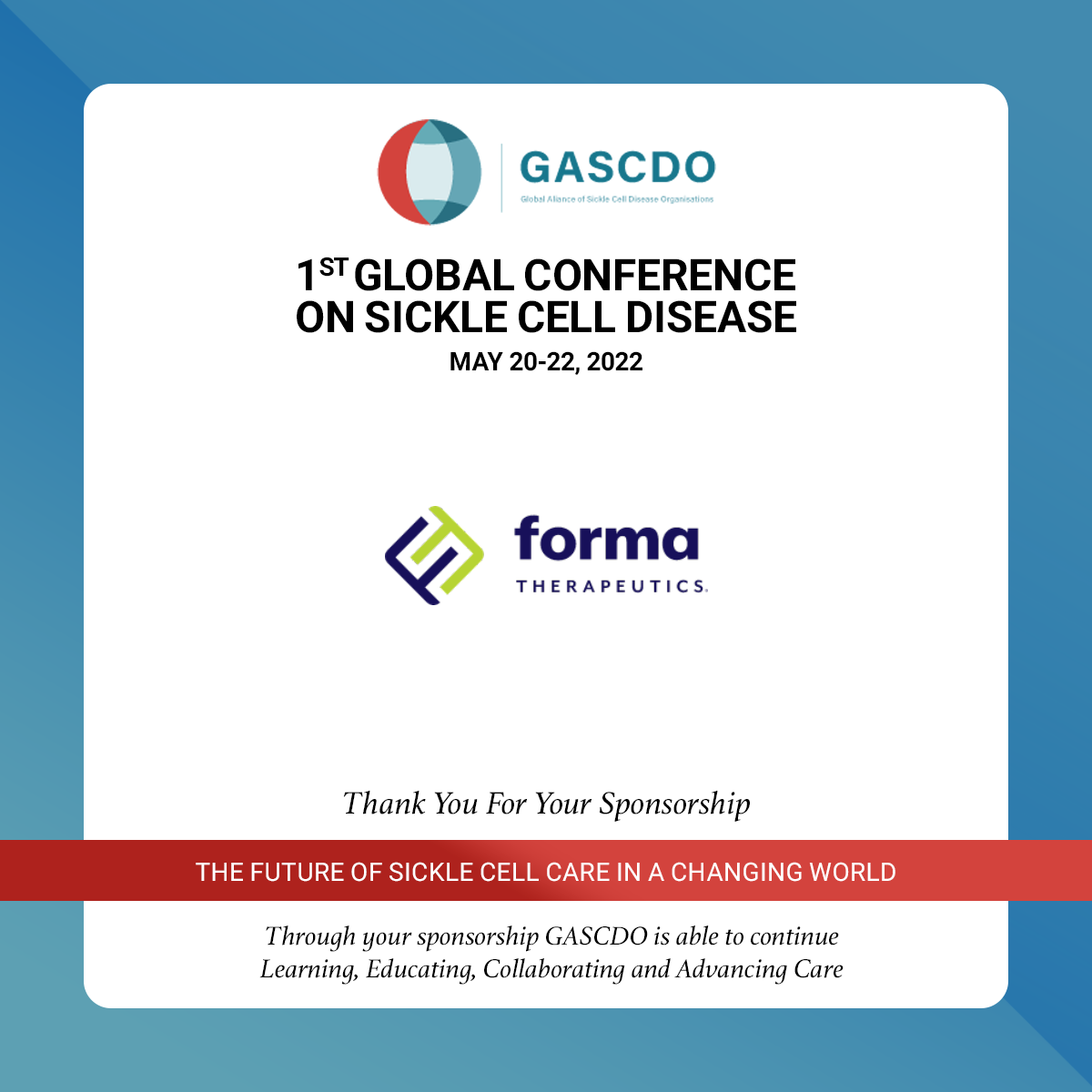 It is our pleasure to invite you to the FIRST GLOBAL CONFERENCE OF SICKLE CELL DISEASE ORGANIZATIONS which will be held virtually from May 20 to May 22, 2022.